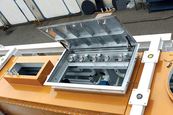 - Центральний монтажний канал, приварений до резервуара і захищений зовні ендопреновим покриттям, містить трубопроводи та всі компоненти станції, включаючи кришки люків, монтажні рами для дозаторів та люк для центрального ЗЛИВУ палива.